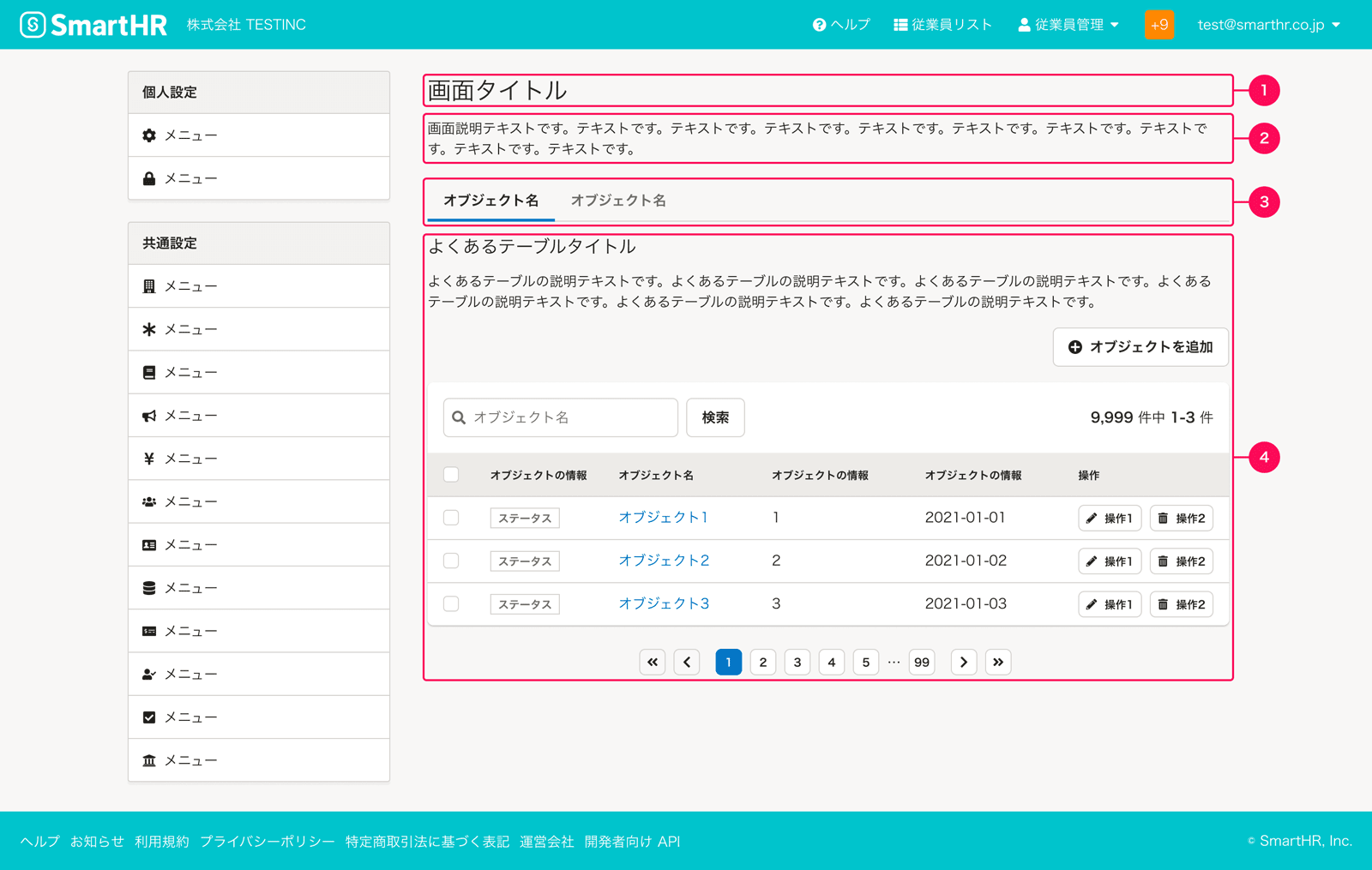SmartHR基本機能の共通設定のレイアウトパターンをまとめています。