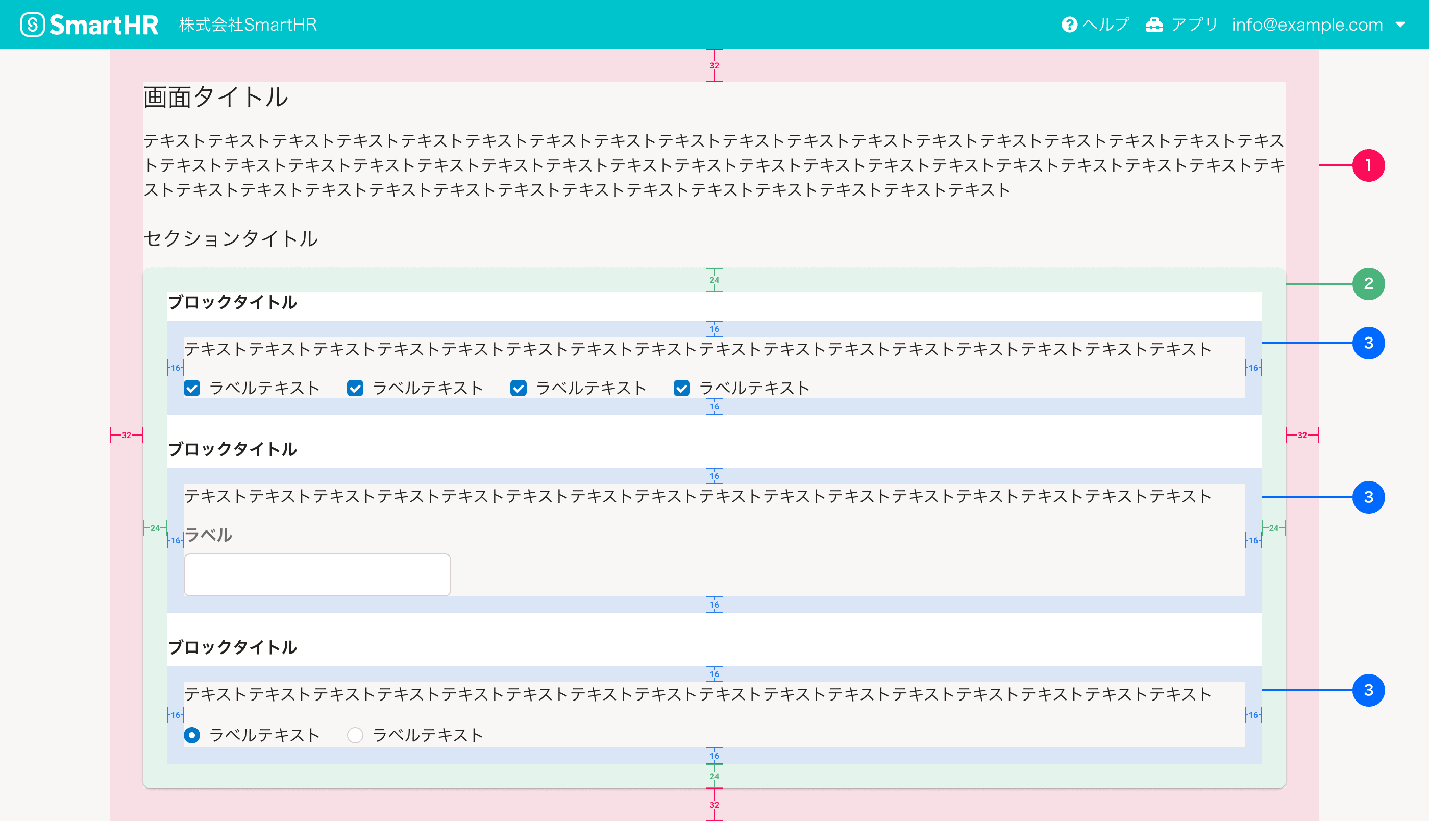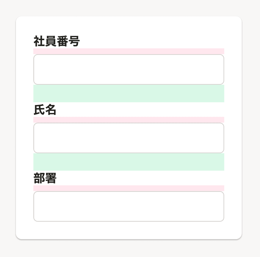 UI設計において開発者は適切な余白について意識することが重要ですが、SmartHR UIのコンポーネントの中には、あらかじめ適切な余白が設定されており、余白の選定を意識することなく利用できるものがあります。Layoutコンポーネントを使う場合や、コンポーネントを組み合わせて画面に配置する場合に、下記を参考に適切な余白を設定してください。